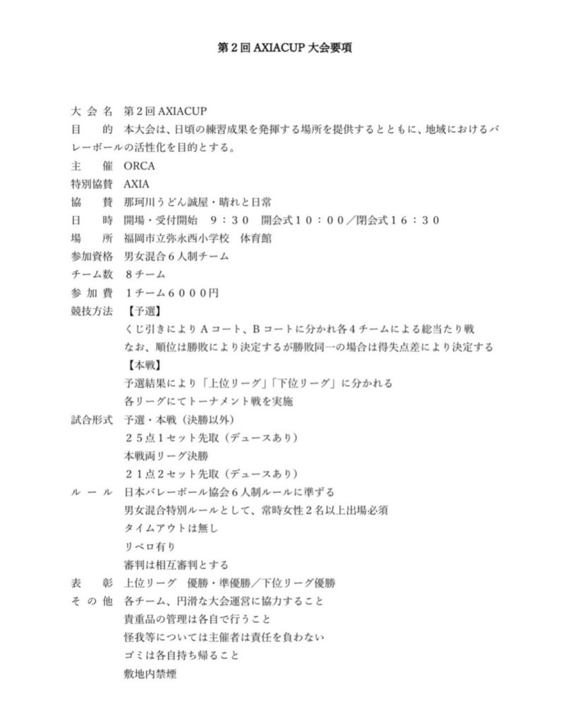 AXIAが協賛のバレーボール大会です。気にになる方は下記までお問い合わせください。